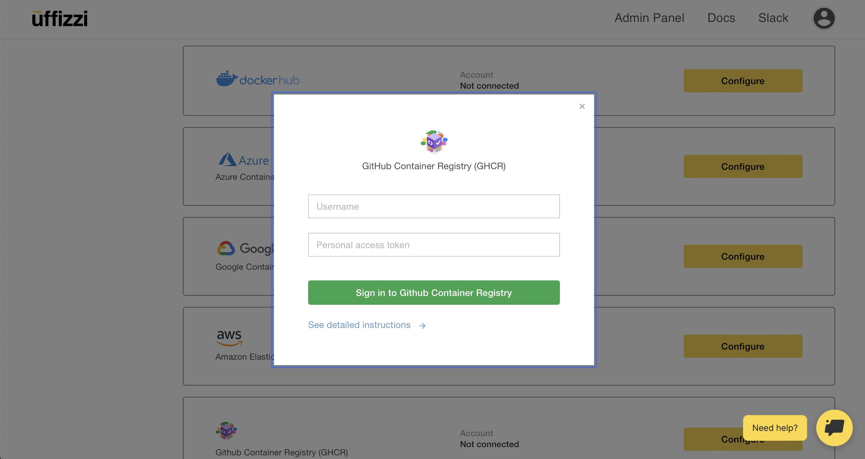 Connect container registy credentials to Uffizzi¶