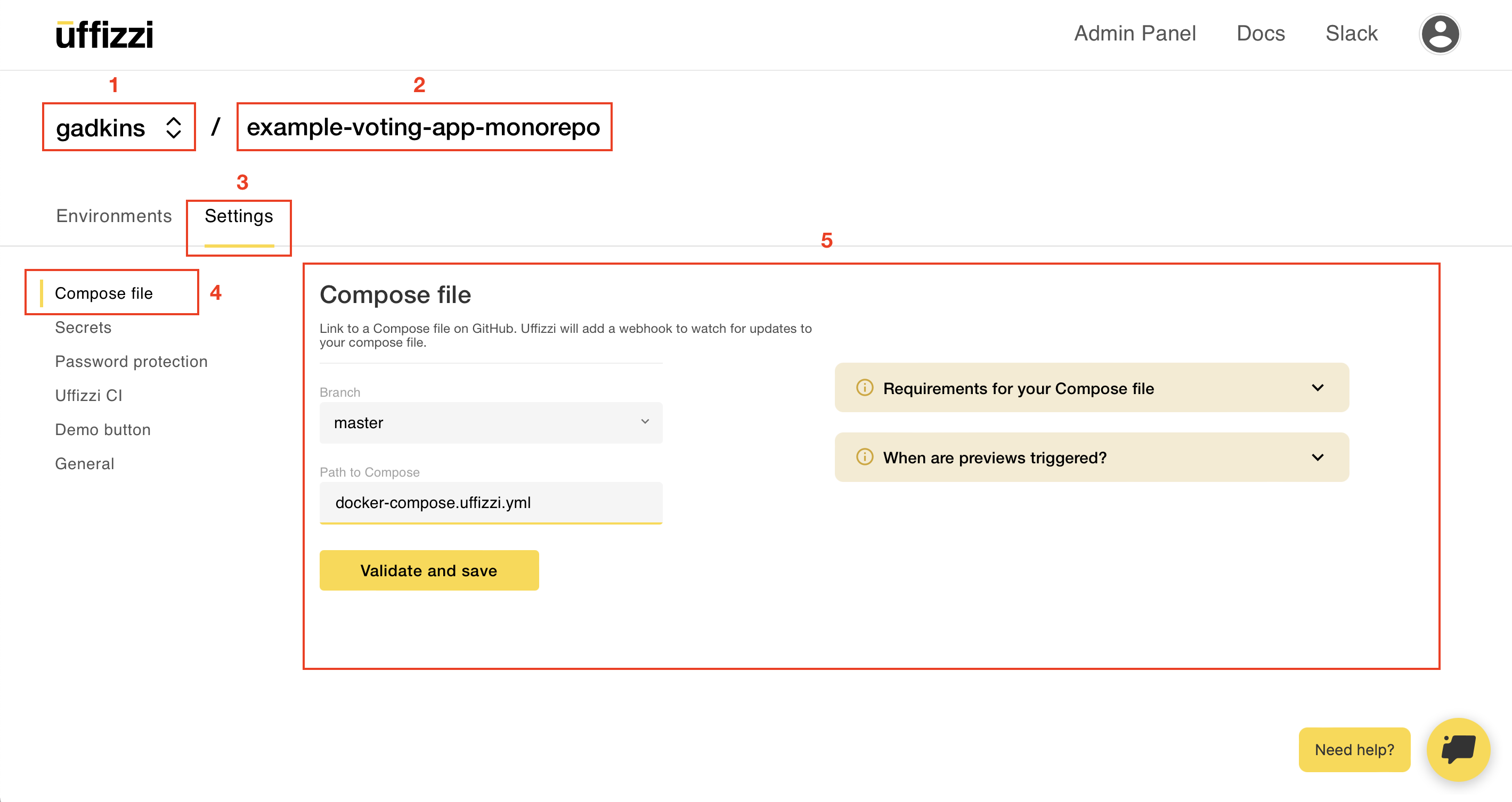 Create a Docker Compose template - A template which defines your application configuration and is used as the basis for the Uffizzi Preview Environment.