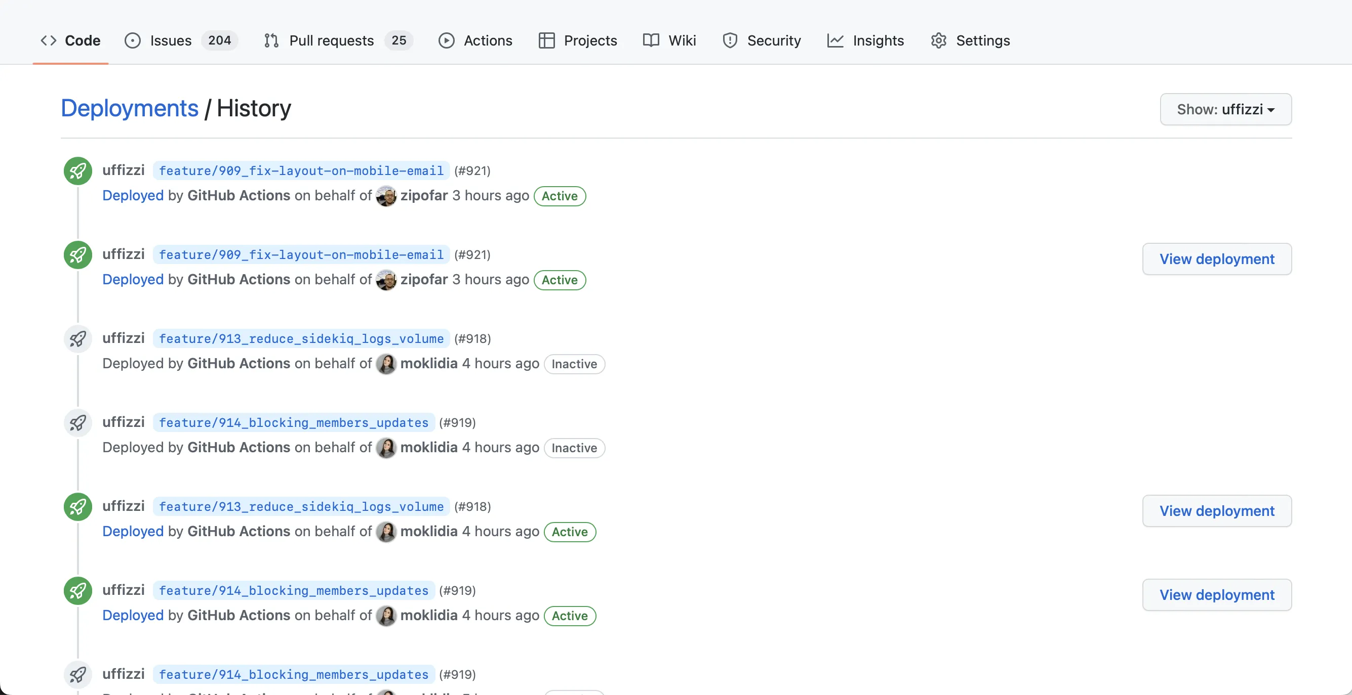 That's it! You can now select the "uffizzi" Environment to see the new Deployments that are created every time your Uffizzi workflow runs.