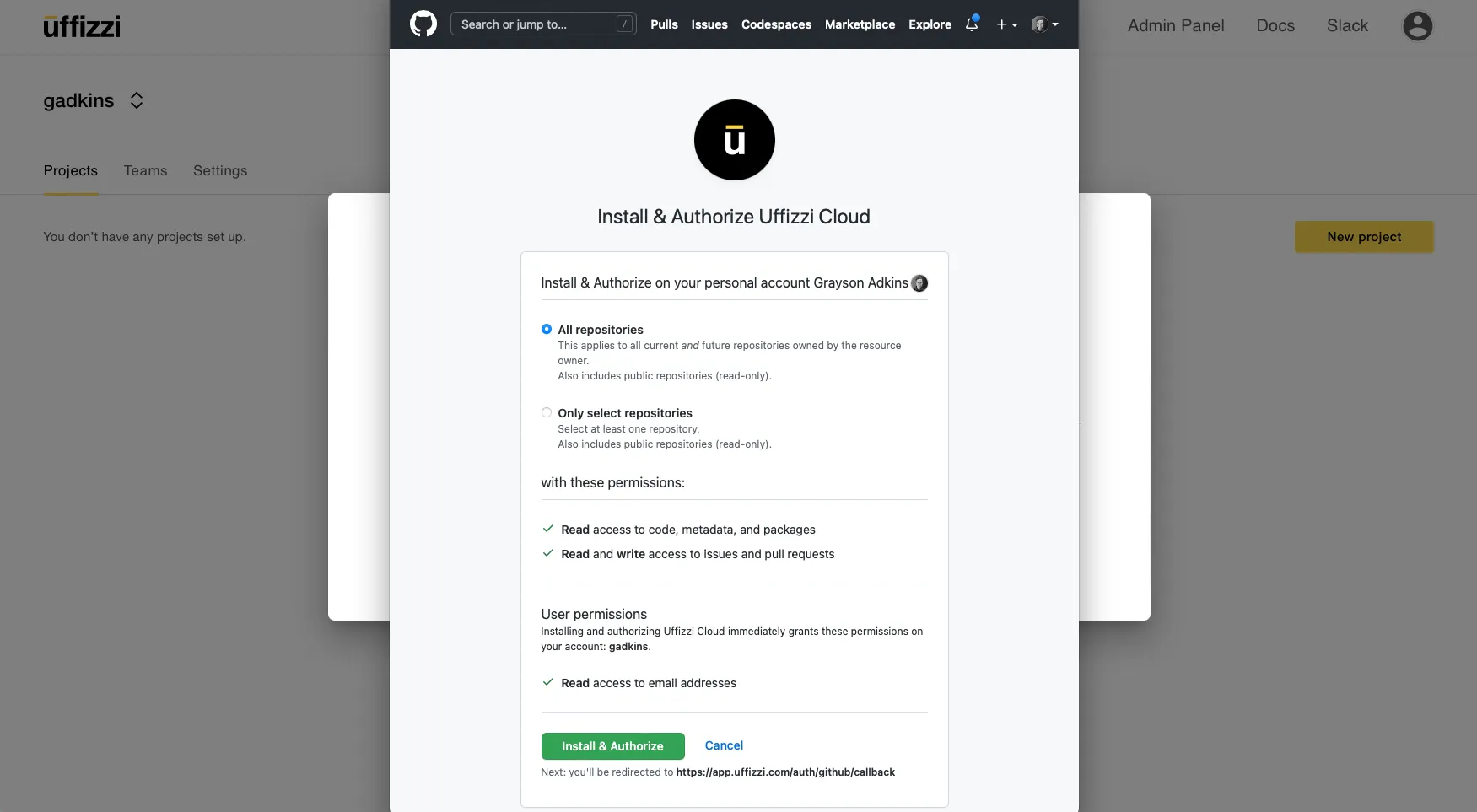 - Install Uffizzi Cloud on your GitHub account