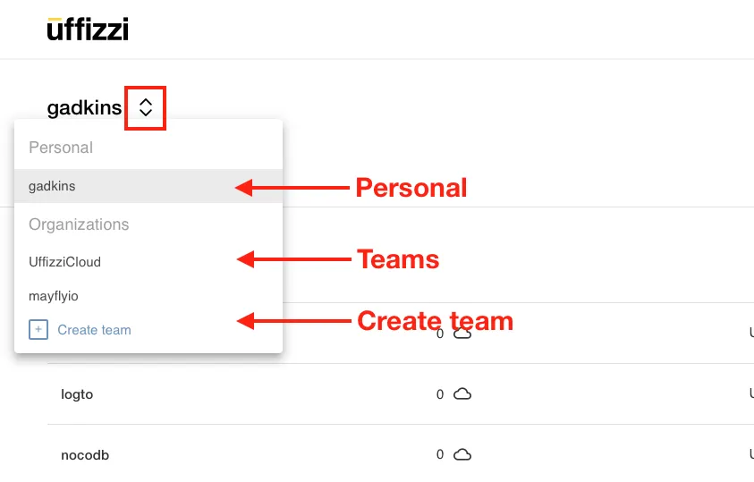 Teams and Accounts on Uffizzi Cloud¶